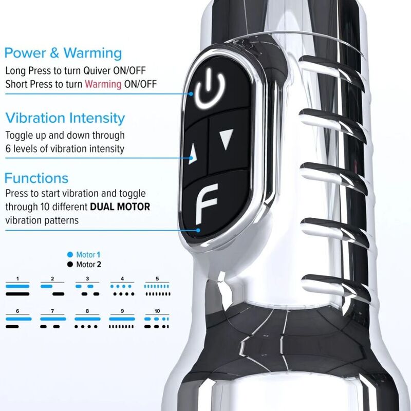 Quiver no es un vibrador cualquiera , con su experiencia de placer totalmente personalizable, diseñado para adaptarse a tu ritmo, es único. Diseñado para una experiencia potente y personalizable, este vibrador proporciona sensaciones profundas y rítmicas que tú controlas. La funda rosa presenta una textura ultrasuave, un orificio realista de estilo femenino y una sensación interna realista, todo dentro de una elegante carcasa metálica cromada que luce tan bien como funciona