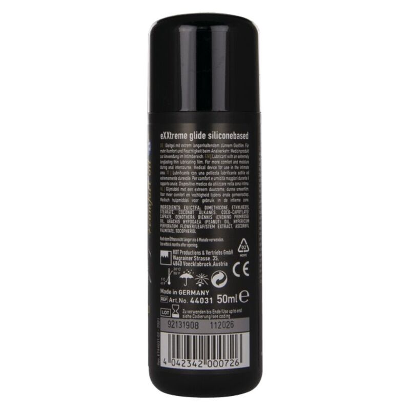 Su fórmula única contiene extractos calmantes de hierba de San Juan y aceite de onagra, que ayudan a relajar los músculos y facilitan una penetración suave y cómoda. La combinación de aceites de silicona cosmética premium proporciona un nivel de deslizamiento excepcionalmente alto, creando una película lubricante de larga duración que deja una sensación sedosa en la piel.