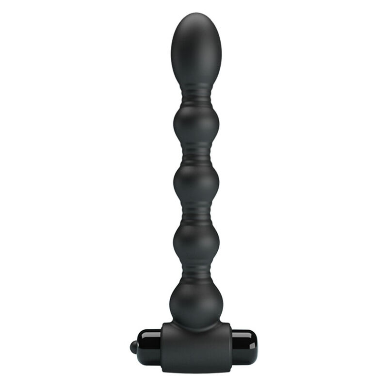 Este vibrador anal tipo cuentas está hecho de un material suave y seguro para la piel. La forma única de cuentas graduadas de este masajeador está diseñada para deslizarse cómodamente dentro del ano para estimular las paredes internas con cada inserción, mientras la base en forma de T asegura un tope cómodo y seguro.