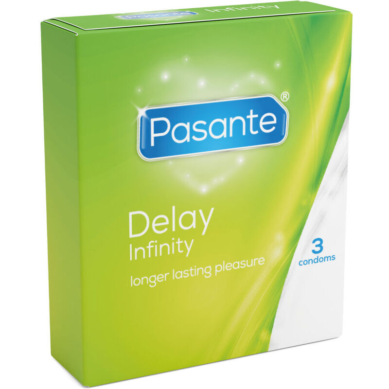 Los condones Pasante Delay están lubricados con un lubricante de Clorhidrato de Lidocaína (1%) no espermicida que puede retrasar el clímax masculino. Paralelos, lisos, transparentes y con pezón.