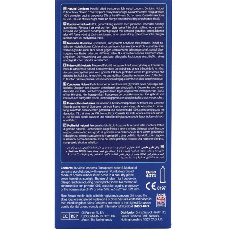 El Skins Natural 16-Pack está diseñado para ofrecer una calidad y un valor premium, ofreciendo un formato listo para usar con hasta un 33 % más de condones por paquete que el líder del mercado. Ideal para minoristas que buscan un producto esencial confiable y de gran éxito que combine discreción, comodidad y calidad. Fabricados con látex natural de alta calidad, los condones Skins Natural son transparentes, resistentes y ultrafinos, ofreciendo una sensación similar a la de la piel. Ligeramente infusionados con vainilla, eliminan el olor típico del látex, mejorando la comodidad y la confianza del usuario.
