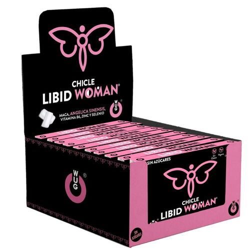WUG LIBID WOMAN – DISPLAY 12 X 8 UDS | Chicle funcional con Maca, Ginseng Femenino y Zinc para potenciar la vitalidad femenina